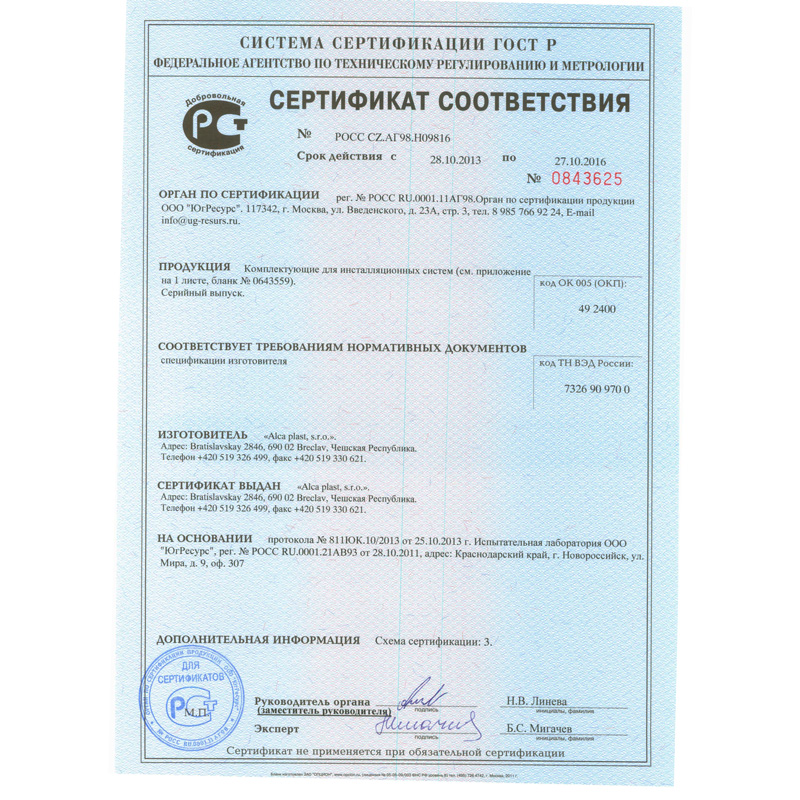 - Совместима со всеми кнопками управления Alcaplast;