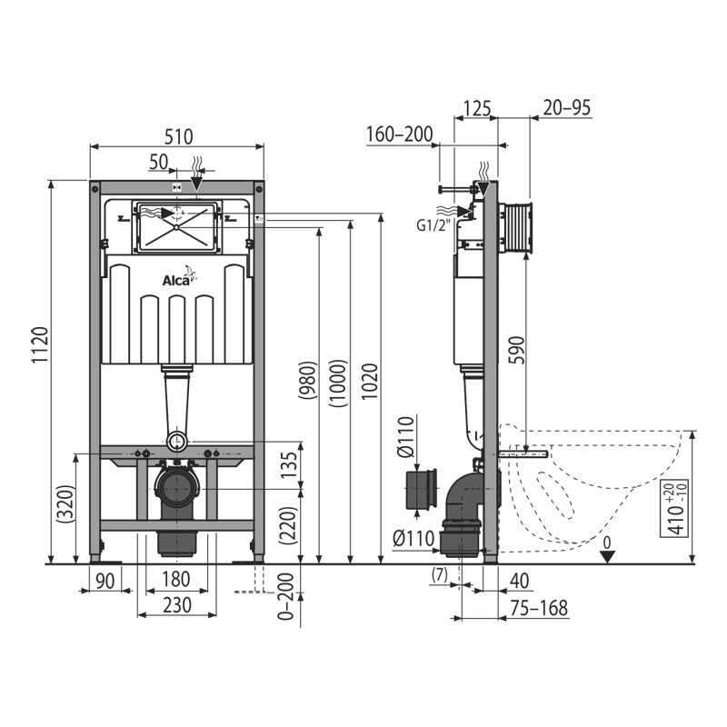 Система инсталляции для подвесного унитаза Alcaplast AM101/1120
