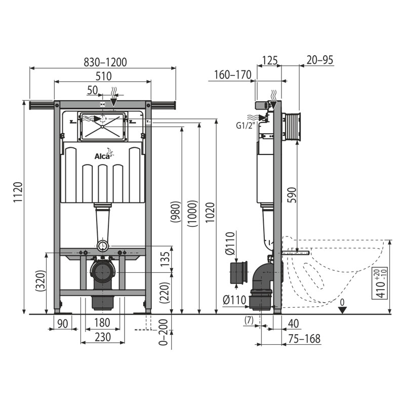 Система инсталляции для подвесного унитаза Alcaplast AM102/1120