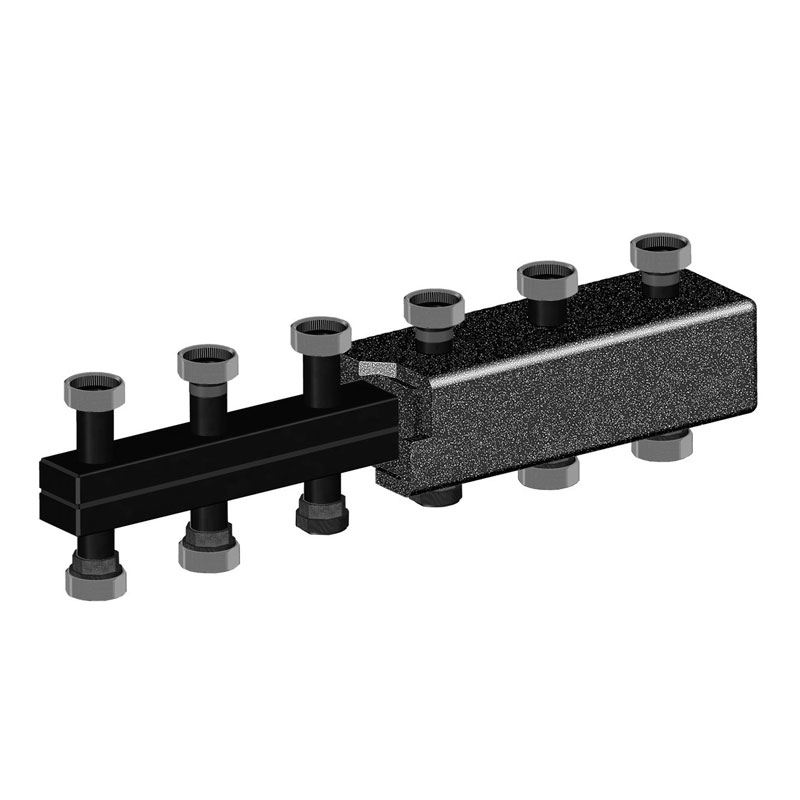 Настенный распределительный коллектор для котельных установок, в которых теплоноситель необходимо раздавать на несколько потребителей тепла (более одного) с разными параметрами (расход теплоносителя, гидравлическое сопротивление, температурный график).