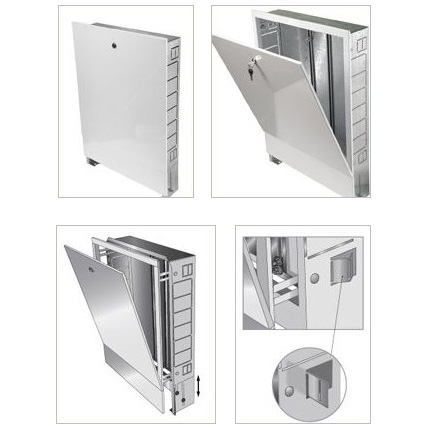 Встраиваемый распределительный шкаф для отопления и водоснабжения. Предназначен для размещения в нём разводки труб и контрольных приборов.